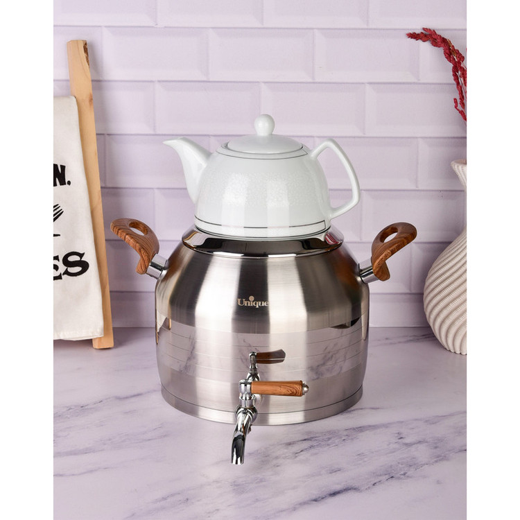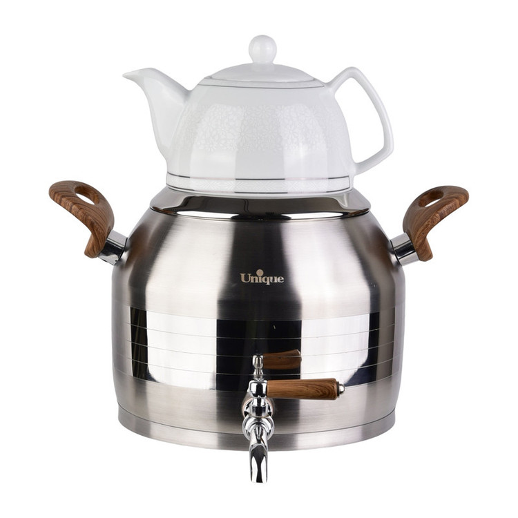 این ست بینظیر، تلفیقی هنرمندانه از سنت و مدرنیته است که تجربهای متفاوت از دم کردن و نوشیدن چای را برای شما به ارمغان میآورد. کتری این ست کتری و قوری با طراحی چشمنواز و بدنه استیل ، نه تنها زینتبخش آشپزخانه شما خواهد بود، بلکه با کارایی بالا، آب را به سرعت به جوش آورده و قوری چینی خوشساخت آن، عطر و طعم واقعی چای را حفظ میکند.این محصول دارای طراحی مدرن و زیبا ، کیفیت ساخت بینظیر ، کارایی بالا ، مناسب برای مصارف روزانه و مهمانیها و همچنین بعنوان یک هدیه ارزشمند می باشد.