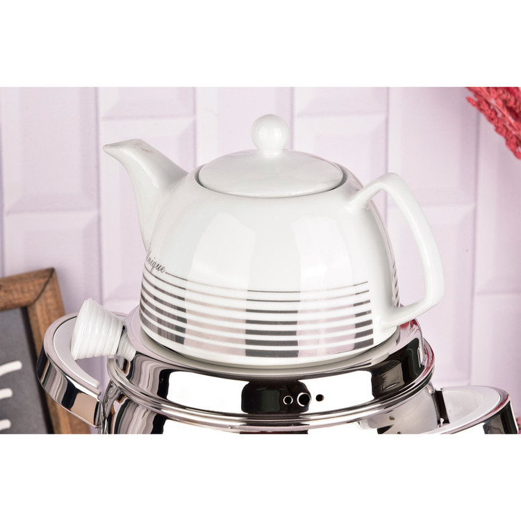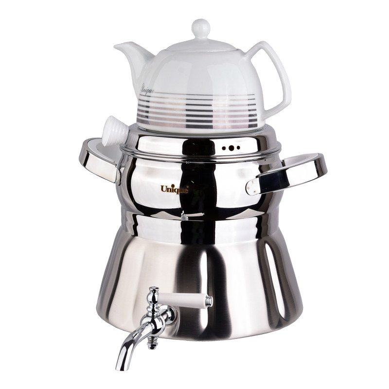 ست کتری و قوری یونیک جایگزین مناسبی برای تعویض کتری و قوری قدیمی آشپزخانهتان خواهد بود. استفاده از چینی در ساخت قوری به حفظ طعم و عطر اصلی چای و قهوه کمک بسزایی میکند. چینی علاوه بر حفظ عطروطعم نوشیدنی، در برابر گرما و حرارت غیرمستقیم پایداری بالایی دارد و گذشت زمان تاثیری خاصی بر کیفیت و ظاهر آن ندارد. استیل بهکاررفته در کتری علاوه بر مقاومت مطلوب در برابر گرما و حرارت، ضدزنگ است و وجود آب داخل محفظهی آن باعث زنگزدگیاش نخواهد شد.