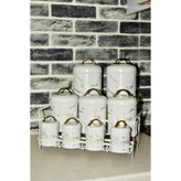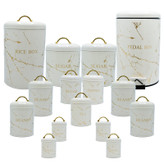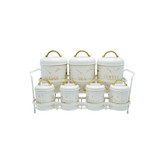 سرویس آشپزخانه 16 پارچه بی وی کی شامل جابرنجی، سطل زباله، ظرف قند و شکر، جاحبوباتی و جا ادویه است.طراحی و ساخت این محصول به گونهای بوده که عنوان هر ماده روی بدنهی ظرف درج شده و شما به آسانی بدون اینکه درپوش ظرف را برداشته بتوانید محتویات داخل آن را شناسایی کنید. هر کدام از این ظروف دارای درپوش و دسته بوده و وجود دسته باعث شده که به راحتی بتوانید آن را جابهجا کنید. درب های به کار رفته در این ظرف بسیار محکم و مقاوم بوده و محتویات داخل آن را به خوبی نگهداری میکند. درپوش موجود روی این ظروف از جنس بدنه می باشد. سطل برنج :1 عدد سطل قند :1 عدد سطل شکر :1 عدد ظروف حبوبات : 4 عدد ظروف ادویه :4 عدد ظروف پاسماوری : 3 عدد سطل زباله :1 عدد به همراه یک استند