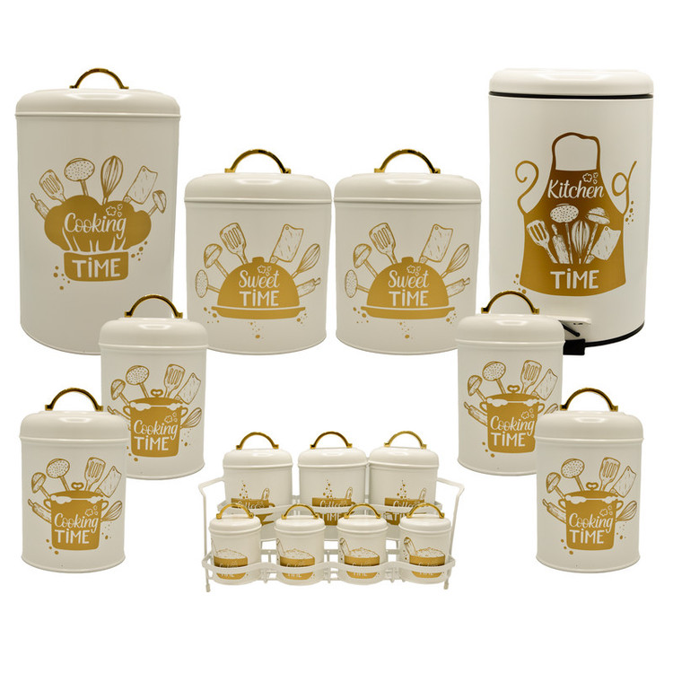 سرویس آشپزخانه 16 پارچه بی وی کی شامل جابرنجی، سطل زباله، ظرف قند و شکر، جاحبوباتی و جا ادویه است.طراحی و ساخت این محصول به گونهای بوده که عنوان هر ماده روی بدنهی ظرف درج شده و شما به آسانی بدون اینکه درپوش ظرف را برداشته بتوانید محتویات داخل آن را شناسایی کنید. هر کدام از این ظروف دارای درپوش و دسته بوده و وجود دسته باعث شده که به راحتی بتوانید آن را جابهجا کنید. درب های به کار رفته در این ظرف بسیار محکم و مقاوم بوده و محتویات داخل آن را به خوبی نگهداری میکند. درپوش موجود روی این ظروف از جنس بدنه می باشد. سطل برنج :1 عدد سطل قند :1 عدد سطل شکر :1 عدد ظروف حبوبات : 4 عدد ظروف ادویه :4 عدد ظروف پاسماوری : 3 عدد سطل زباله :1 عدد به همراه یک استند