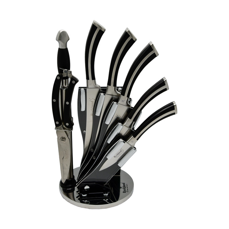 سرویس چاقو راکلند یکی از بهترین چاقو های موجود در بازار ایران میباشد. جنس این چاقوها از استیل ضدزنگ , بصورت تیغه و دستگیره یک تیکه میباشد.تیغه و دستگیره یک تیکه باعث تسلط راحتتر چاقو در دست می شود و از جداشدن تیغه از دستگیره جلوگیری میکند.