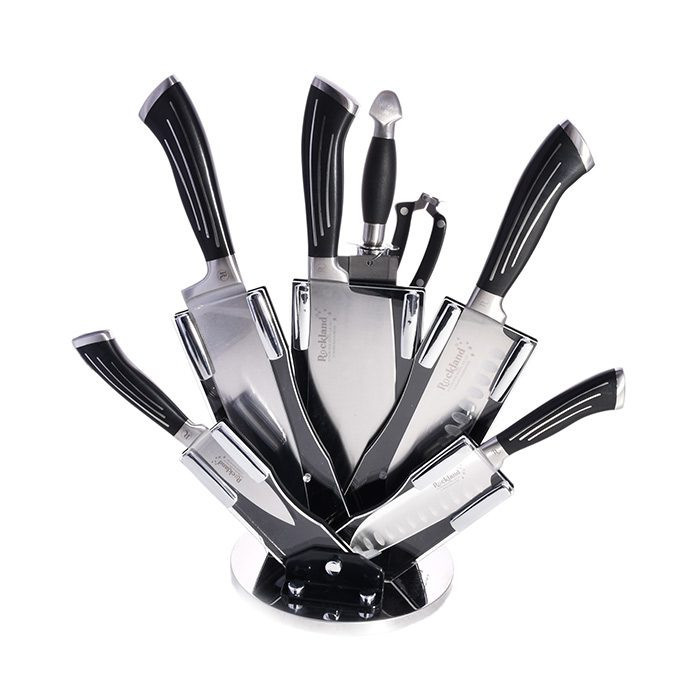 ساخته شده از تیغه های تیتانیوم و سنگین، فوق العاده تیز و برنده و دسته های چاقو با تیغه یک تکه میباشد، شامل : 4 عدد چاقو در 4 سایز 1 عدد ساطور 1 عدد قیچی مرغ 1 عدد چاقو تیز کن 1 عدد استند ( چرخشی 360 درجه )