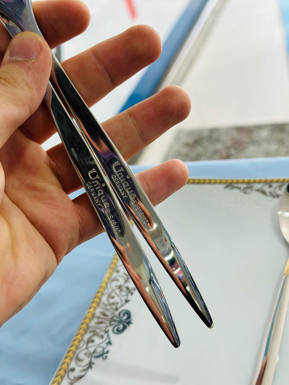 سرویس قاشق چنگال یونیک آلمان 24 نفره ۱۲۲ پارچه مدل پنیری دو رنگ