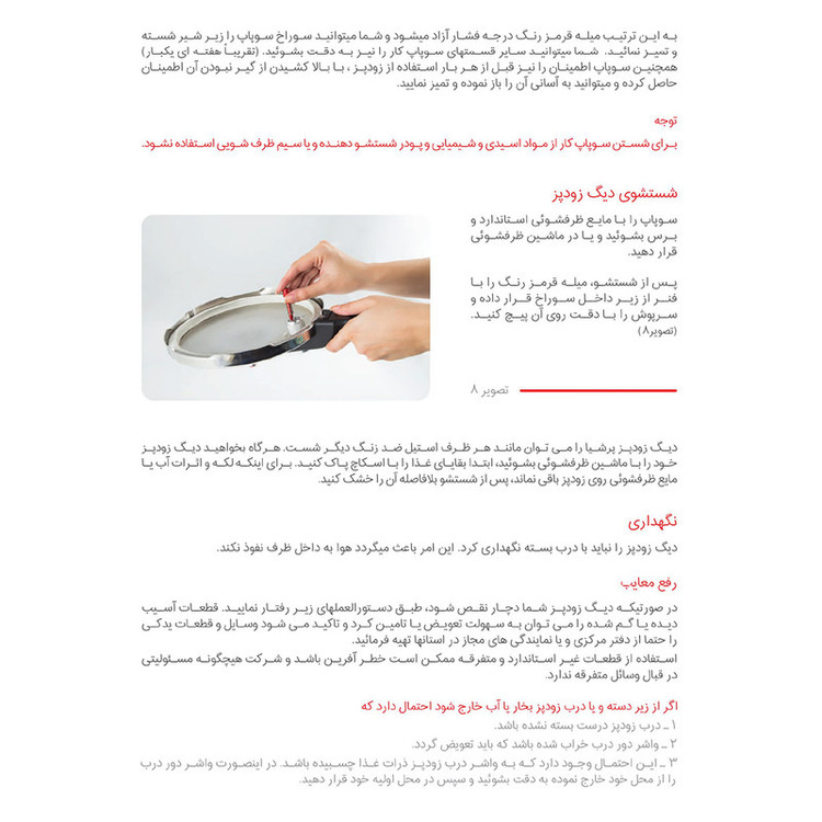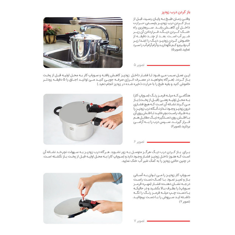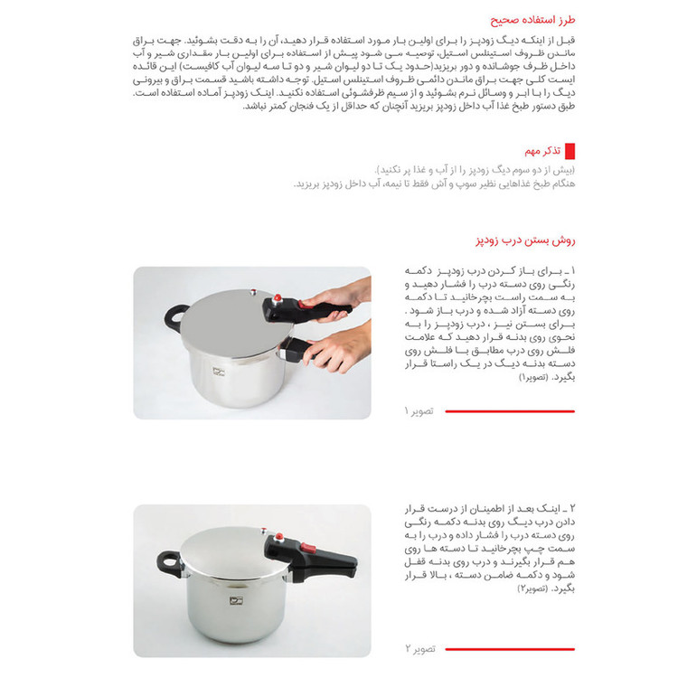 - استیل ضد خط و خش - کفه سه لایه آلومینیومی جهت جلوگیری از چسبندگی و سوختن غذا - سه سیستم تخلیه فشار جهت تامین حداکثر ایمنی - دارای ضامن روی دسته جهت باز و بسته نمودن درب - دارای نشان روی درب بمنظور آسان باز و بسته نمودن درب - قابل شستشو در ماشین ظرفشویی