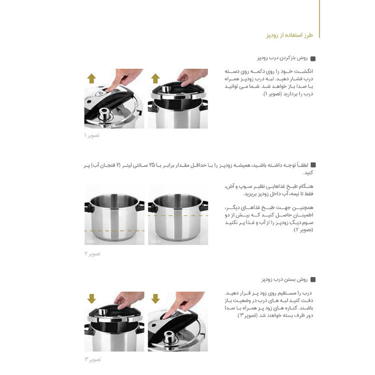ظرفیت زودپز یا قابلمه بر حسب نفر: ظرفیت 4 تا 6 لیتر برای 3 تا 4 نفر