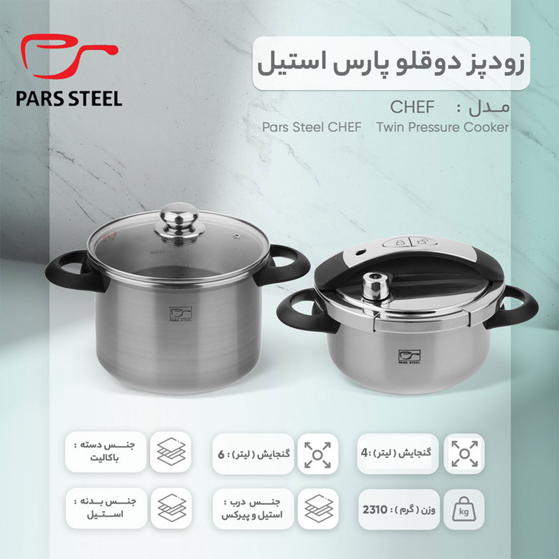 ظرفیت زودپز یا قابلمه بر حسب نفر: ظرفیت 4 تا 6 لیتر برای 3 تا 4 نفر