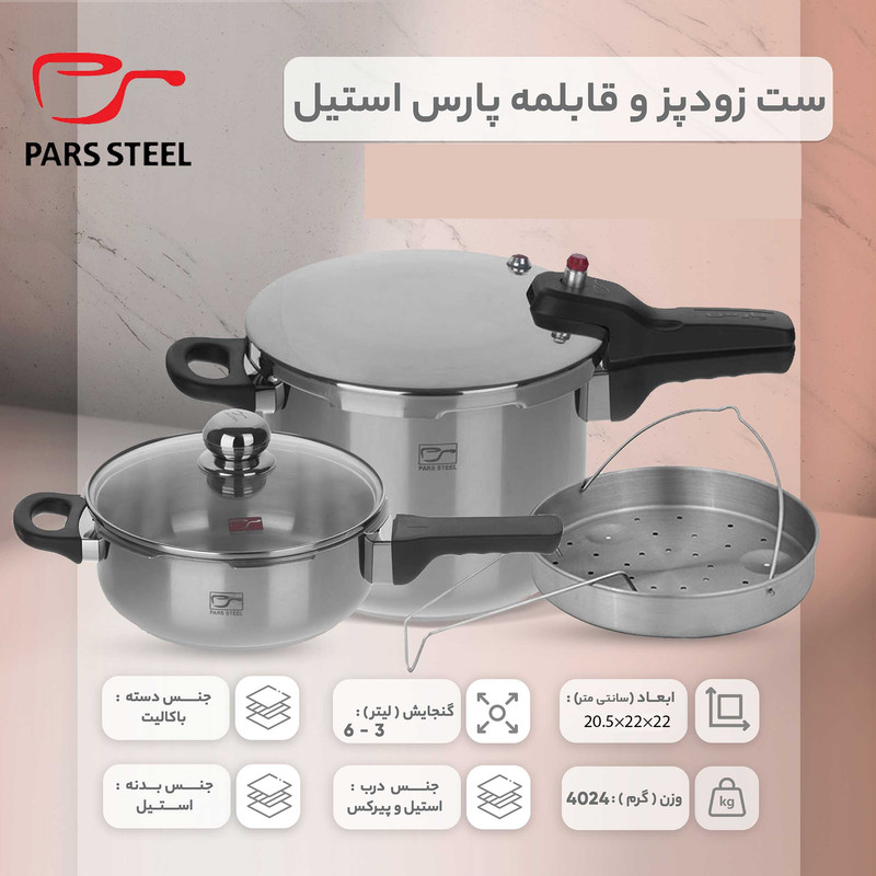 زودپز دوقلو پارس استیل مدل کف سه لایه گنجایش 6 و 3 لیتر