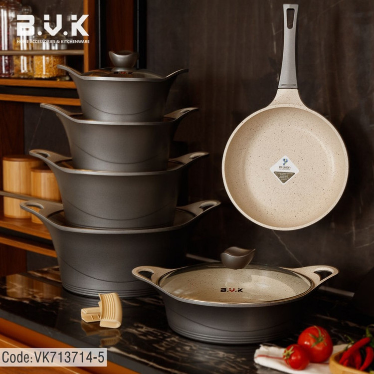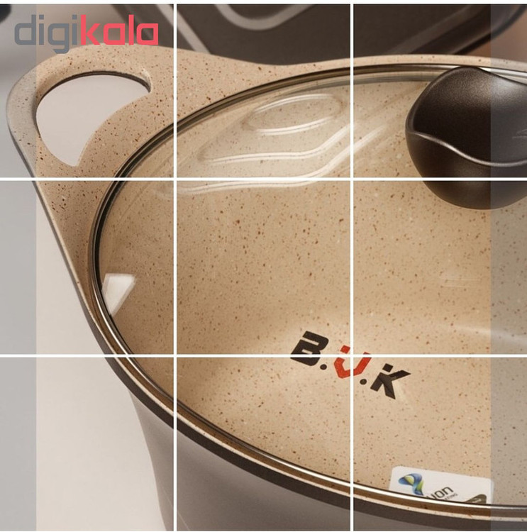 سرویس قابلمه 14 پارچه گرانیت برند B.V.k از سری محصولات به روز شرکت بی وی کی میباشد. این سرویس قابلمه با درب هایی از جنس پیرکس آنتی شوک بوده که اجازه مشاهده مراحل پخت را به شما میدهد و دارای محفظه خروج بخار است که از سر رفتن مایعات درون قابلمه جلوگیری میکند. دستگیره ظروف از جنس سیلیکون مقاوم که هماهنگی زیبایی را با بدنه به وجود اورده است تمامی ظروف از جنس گرانیت تهیه شده است گرانیت به عنوان روکش نچسب، دقیقا مثل تفلون است با این تفاوت که حاوی ترکیب مضر آزاد شده در هنگام خش به ظروف نیست. روکشهای گرانیتی در مقابل فرسایش و ساییدگی تا حد زیادی مقاوم هستند شستشوی آسان و انتقال سریع حرارت با مصرف انرژی کم و قابل استفاده بر روی انواع اجاق گازهای معمولی و القایی از دیگر ویژگی های سرویس قابلمهB.V.Kمیباشد. این ست زیبای پخت و پز از برند نام آشنای B.V.K میباشد.
