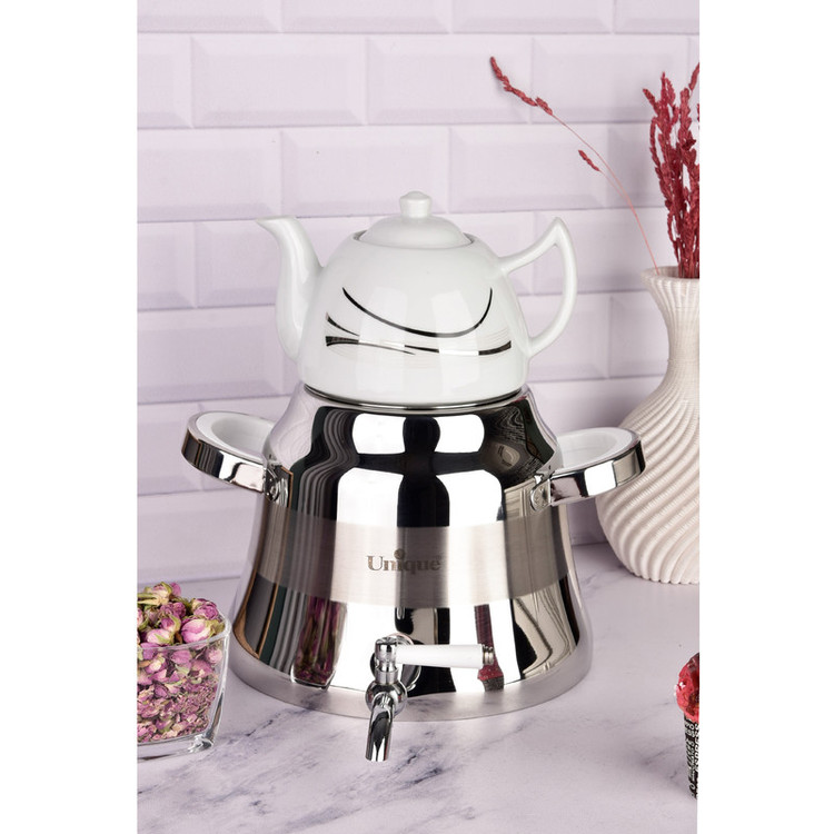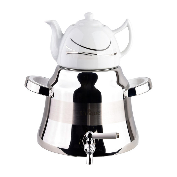 ست کتری و قوری یونیک جایگزین مناسبی برای تعویض کتری و قوری قدیمی آشپزخانهتان خواهد بود. استفاده از چینی در ساخت قوری به حفظ طعم و عطر اصلی چای و قهوه کمک بسزایی میکند. چینی علاوه بر حفظ عطروطعم نوشیدنی، در برابر گرما و حرارت غیرمستقیم پایداری بالایی دارد و گذشت زمان تاثیری خاصی بر کیفیت و ظاهر آن ندارد. استیل بهکاررفته در کتری علاوه بر مقاومت مطلوب در برابر گرما و حرارت، ضدزنگ است و وجود آب داخل محفظهی آن باعث زنگزدگیاش نخواهد شد.