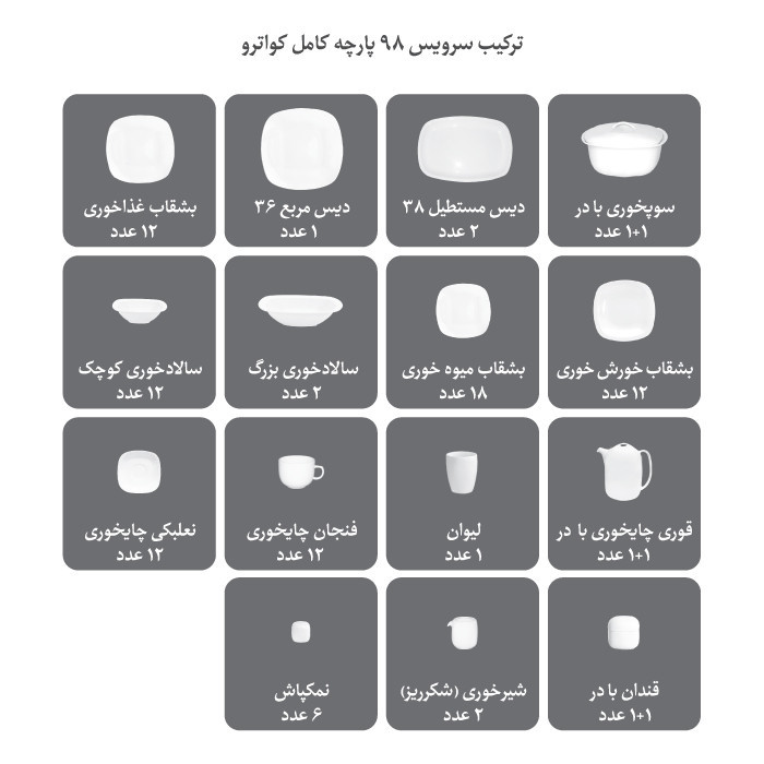 سرویس غذاخوری 98 پارچه 12 نفره چینی زرین ایران مدل فلورانس کواترو درجه یک