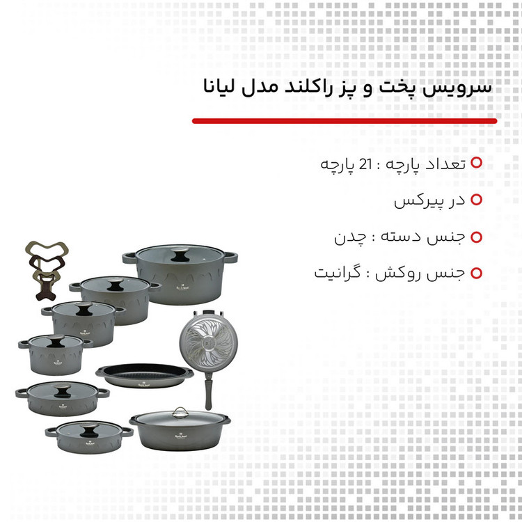 سرویس قابلمه راکلند مدل لیانا 21 پارچه طوسی