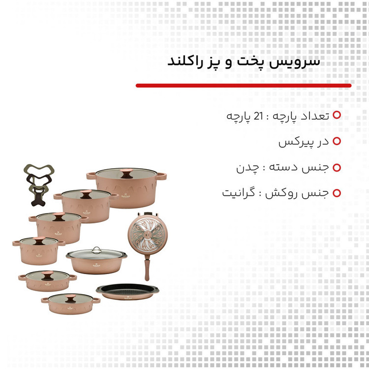 سرویس قابلمه راکلند مدل لیانا 21 پارچه رنگ رزگلد