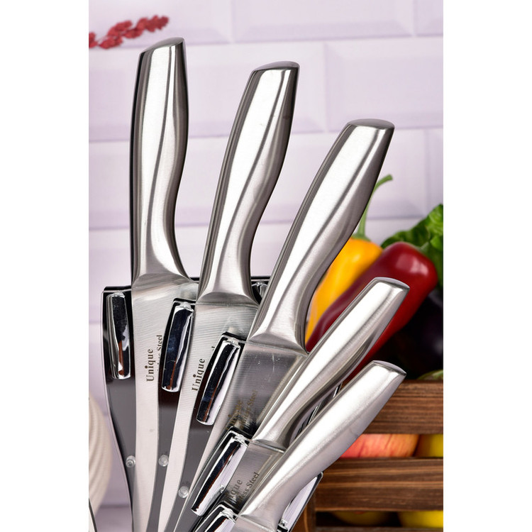 سرویس چاقو یونیک یکی از بهترین چاقو های موجود در بازار ایران میباشد. جنس این چاقوها از استیل , بصورت تیغه و دستگیره یک تیکه میباشد.تیغه و دستگیره یک تیکه باعث تسلط راحتتر چاقو در دست می شود و از جداشدن تیغه از دستگیره جلوگیری میکند