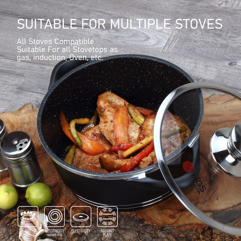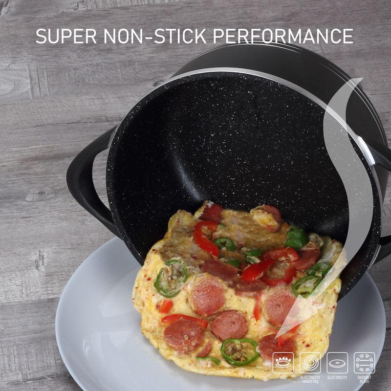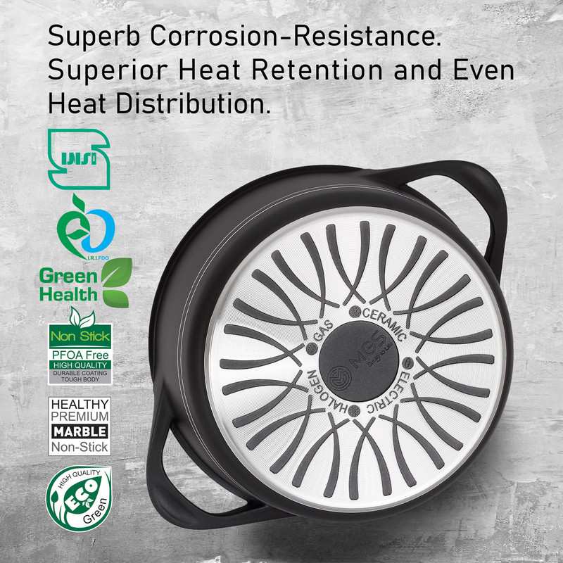 - قابلیت پخش حرارت در کف ظرف - مقاوم در برابر خوردگی - بدنه از آلومینیوم دایکست - قابل قرارگیری روی انوع شعله (گازی، برقی، القایی)